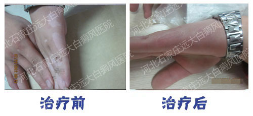 恢复情况:治疗一段时间,黑色素细胞恢复状况良好,白斑逐渐好转,直至复色,后巩固治疗,身体各项指标接近正常水平,无新增白斑。