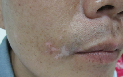 恢复情况:治疗一段时间,黑色素细胞恢复状况良好,白斑逐渐好转,直至复色,后巩固治疗,身体各项指标接近正常水平,无新增白斑。