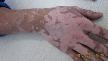 恢复情况:治疗一段时间,黑色素细胞恢复状况良好,白斑逐渐好转,直至复色,后巩固治疗,身体各项指标接近正常水平,无新增白斑。