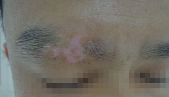 病情陈述:磕伤导致额头出现白斑,面积扩大