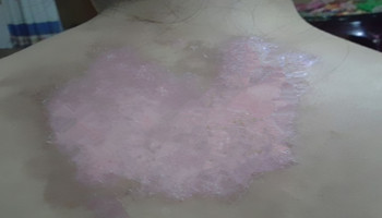 病情陈述:过敏之后过度使用激素药膏止痒,颈部出现白斑,从鸡蛋大小扩散成巴掌大小,边界模糊