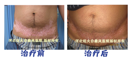 恢复情况:治疗一段时间,黑色素细胞恢复状况良好,白斑逐渐好转,直至复色,后巩固治疗,身体各项指标接近正常水平,无新增白斑。