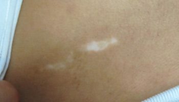 通过下面的图片我们也可以看到:婴儿长白癜风早期一般为圆形、椭圆形或不规则型的白斑,发病部位不一定,与周围皮肤之间的边界不明显,表面光滑、没有疼痛感和骚痒感,表面没有覆盖鳞屑,皮肤没有缩皱,脱毛等症状。婴儿长白斑,若不及时治疗会有什么危害?推荐阅读——白斑不治有哪些危害