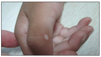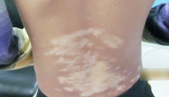 晚期白斑面积更大,可能会遍布孩子全身,白斑之间会相互融合成大面积的白斑,颜色会变成更显眼的瓷白色,代表白斑部位黑色素基本完全脱失。