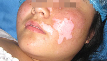 病情陈述:磕伤导致额头出现白斑,面积扩大