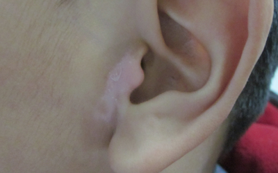 来自石家庄市正定的阳阳白斑出现在耳朵上,通过图片我们可以看到,阳阳耳朵上的白斑主要分布在耳朵前面一块,颜色为淡白色,白斑边缘不清晰,经过检查,确诊孩子长白斑是由于遗传,加上缺乏微量元素导致的,后续经过照308准分子激光,成功复色。(白癜风发病特征复杂多变,与多种白斑病区分困难,到医院做全面检查才能避免白斑误诊错治,点我,立即在线0元预约挂号。)