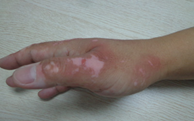 恢复情况:临床案例分析,一般1-2次白斑部位发红,大概一月以后黑色素逐步形成。