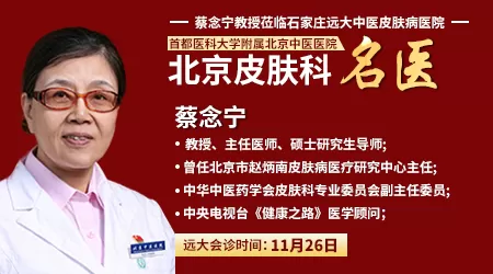 蔡念宁教授:首都医科大学附属北京中医医院皮肤科zhi ming专家主任医师,硕士研究生导师,学术上秉承于赵炳南教授及张志礼教授。