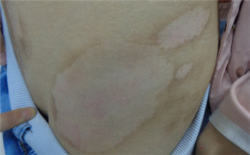 病情陈述:过敏之后过度使用激素药膏止痒,颈部出现白斑,从鸡蛋大小扩散成巴掌大小,边界模糊