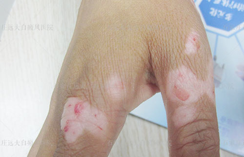 恢复情况:治疗一段时间,黑色素细胞恢复状况良好,白斑逐渐好转,直至复色,后巩固治疗,身体各项指标接近正常水平,无新增白斑。