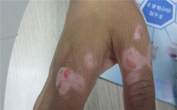 恢复情况:治疗一段时间,黑色素细胞恢复状况良好,白斑逐渐好转,直至复色,后巩固治疗,身体各项指标接近正常水平,无新增白斑。
