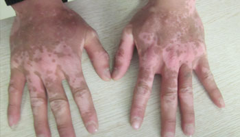 恢复情况:治疗一段时间,黑色素细胞恢复状况良好,白斑逐渐好转,直至复色,后巩固治疗,身体各项指标接近正常水平,无新增白斑。